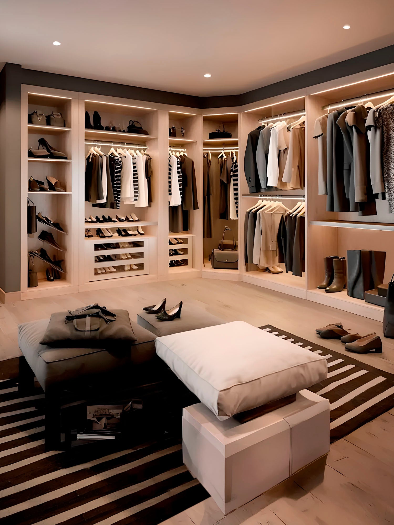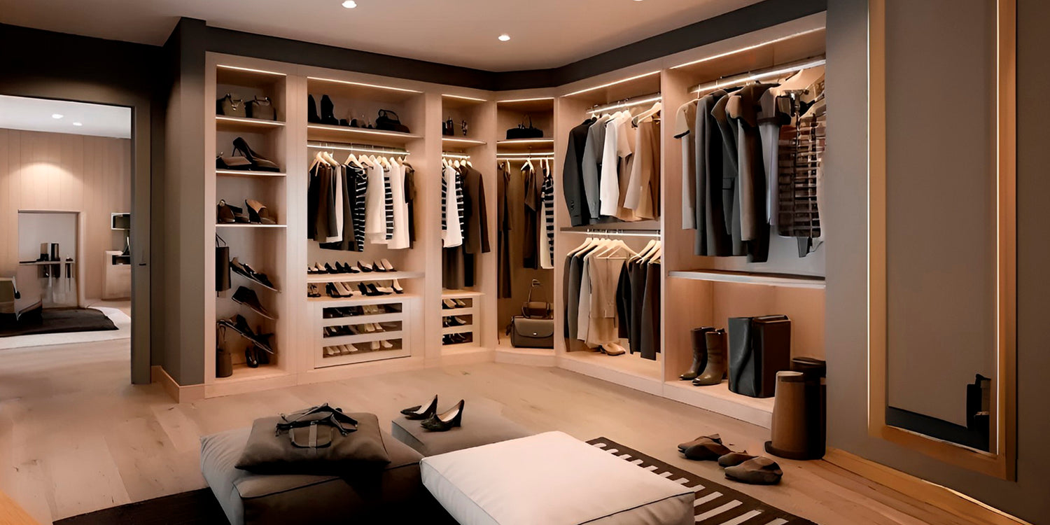 Гардеробні кімнати – це зручне та стильне рішення для зберігання, що поєднує ергономіку, сучасні механізми та якісні матеріали, такі як ДСП, МДФ, натуральне дерево, скло й метал