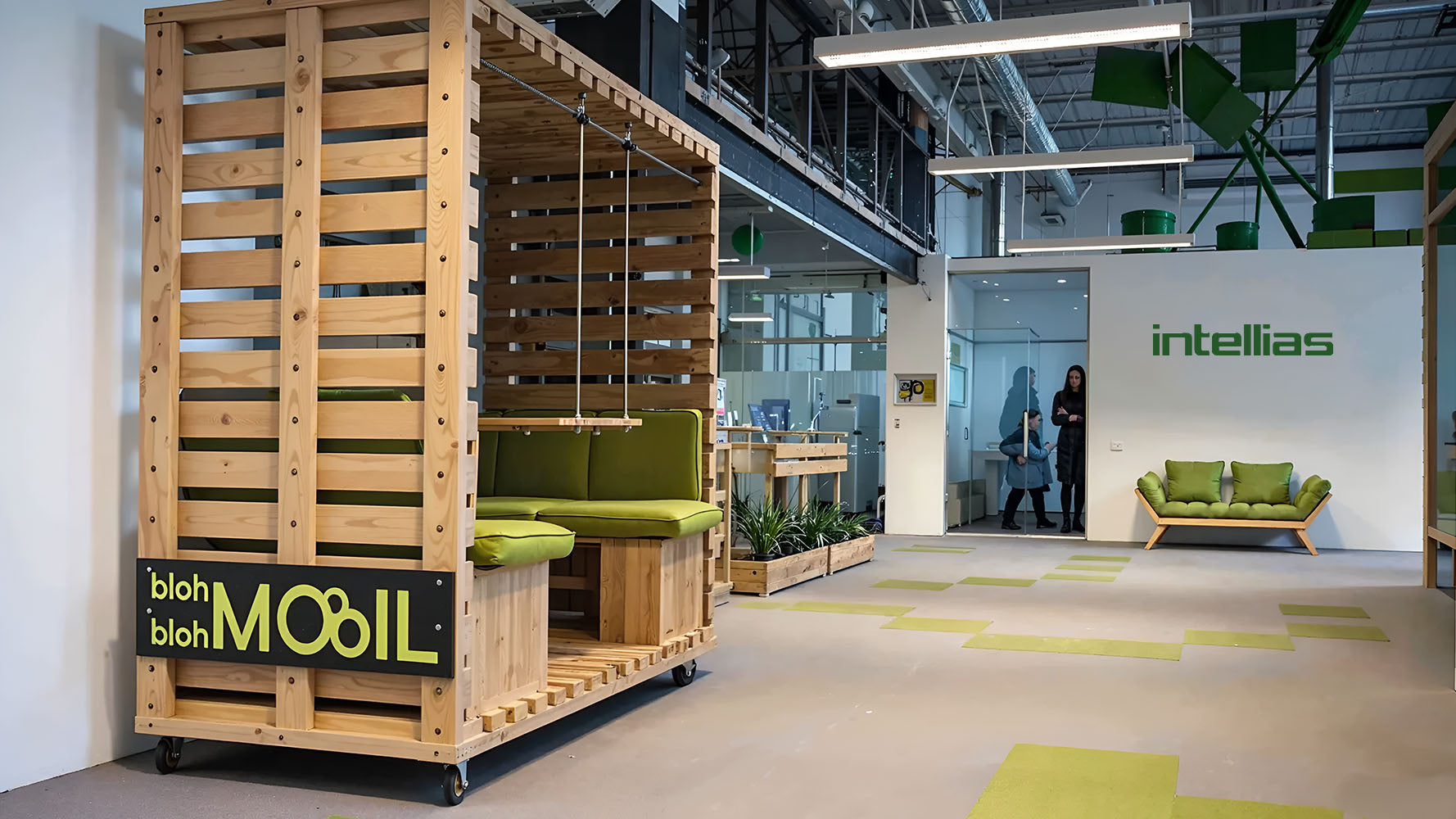 Замовляли в офіс багато різних нестандартних виробів, а також дивани-футони Allegro в кольорі нашого бренду для відпочинкової зони.